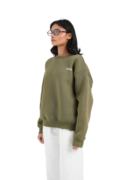 MELTON COTTON FLEECE CREWNECK WITH OUR PREMIUM FRONT PRINT LOGO AND THE ENGRAVED BRANDED METAL PATCH